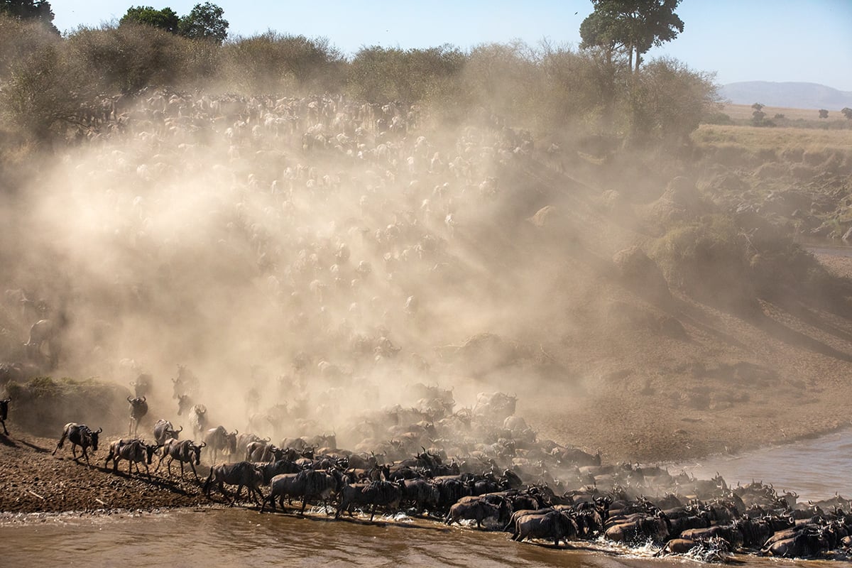 The adventure on your Great Migration Safari begins with a morning transfer from your hotel to Nairobi’s domestic Wilson Airport for your scenic flight into the Masai Mara. Landing in the heart of the Mara Triangle Conservancy roughly 45 minutes later, the plan is usually to meander back to camp for check in & orientation followed by some lunch. We'll then ready ourselves for the afternoon safari, returning to camp just after sunset where fireside drinks & a lovely dinner await.DAY 2 - 6